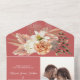 Embrassez le romantisme avec ce corail et pêche faire-part de mariage tout-en-un fleuri. Doté de fleurs douces et élégantes, d'un code QR pour RSVP et d'une zone photo personnalisable, il est parfait pour les mariages rustiques, de jardin ou de boho. Conception écologique sans enveloppe nécessaire.