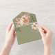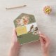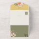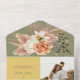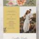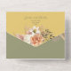 Célébrez l'élégance rustique de votre histoire d'amour avec notre magnifique suite de faire-part de mariage tout-en-un de printemps. Avec ses tons chauds jaune et vert sauge, magnifiquement complétés par de délicats roses de pêche à l'aquarelle, ce design dégage un charme d'inspiration boho. L'invitation comprend un code QR pour les RSVPs sans soucis et un accès facile à votre site mariage, ainsi qu'une photo du couple, invitant vos proches à se joindre à votre célébration entourée par la beauté de la nature. Aucune enveloppe n'est nécessaire : il suffit d'ajouter votre adresse de retour au rabat supérieur, de la sceller avec soin et de l'envoyer avec amour!