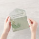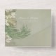 Ce design comprend un boho moderne simple destination un élégant sceau et envoie avec un site de code QR moderne en ligne, scannable URL scan informations invités, un élégant sceau et envoyer, triplé triple budget mariage, vert tropical feuille feuille, botanique plage océan côtier, avec aquarelle sauge feuillage vert, élégant minimaliste simple, un rustique classique calligraphie script police et emplacement photo pour belle image de couple.