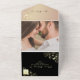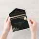 Elégant, vintage, boho rose or et noir tout-en-un faire-part de mariage avec la dentelle florale en faux or et image personnalisée du couple à l'arrière. Ajoutez votre photo, les détails du mariage et rsvp.