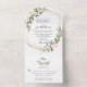 Invitation Tout En Un Boho Sage vert et Mariage géométrique or