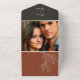 Moderne, bohème, minimaliste, en terre cuite orange brûlée noir et blanc tout-en-un faire-part de mariage avec quatre photos personnalisées du couple. Ajoutez vos 4 photos, votre site web et votre code QR - pour RSVP et plus d'infos.