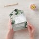 DISPONIBLE AVEC OU SANS OPTIONS DE DÎNER AU LIEU D'UN CODE QR. Ce design présente une belle végétation tropicale luxuriante et des fleurs blanches sur un arrière - plan d'aquarelle vert doux. Parfait pour la destination ou le mariage sur la plage. Créé par Simply Farmhouse Press.