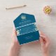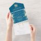 Invitation Tout En Un Boho vert Fleur sauvage Marine Mariage bleu