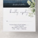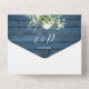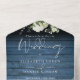 Le tout dans un faire-part de mariage avec de jolies fleurs verdoyantes et une typographie élégante sur un arrière - plan de panneaux de bois bleu rustique. L'invitation comprend une carte RSVP perforée qui peut être adressée individuellement ou laissée vide pour que vous puissiez écrire à la main les coordonnées de votre invité. Conçu par Thisisnotme©