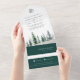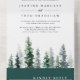 L'élégante invitation à un mariage d'automne ou d'hiver se compose d'une copine de grands pins d'aquarelle dans les tons gris sauge et vert chasseur. Personnalisez avec vos détails de mariage en lettrage doux et noir, surmonté de vos initiales jointes par une carte de script et pour créer un magnifique monogramme personnalisé. Un choix chic pour des mariages élégants d'automne ou d'hiver en montagne ou en forêt.