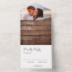 Invitation Tout En Un Bois rustique Lumières Monogramme Mariage photo