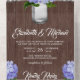 Invitation Tout En Un Bois rustique violet Hydrangea Mason Jar Mariage