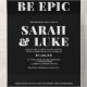 Ce design moderne et amusant tout en un faire-part de mariage est doté d'un arrière - plan noir associé à une typographie blanche et audacieuse. La première chose que vous voyez quand vous ouvrez l'invitation est la phrase "Ça va être épique". Quelle façon amusante de faire savoir à vos invités que votre mariage sera une fête à ne pas manquer ! Le design est moderne et branché... parfait pour un événement plus décontracté et éclectique. L'intérieur de la carte contient l'invitation et une carte rsvp qui peut être détachée et envoyée par la poste. Au verso de la carte se trouve l'adresse postale et l'adresse de retour. Pas besoin de commander des enveloppes ! !