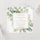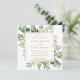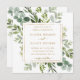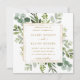 Cette invitation carré mariage présente une aquarelle peinte de la verdure d'eucalyptus, des feuilles verts avec un cadre carré en faux or. Économisez du papier en incluant les détails et RSVP au verso du faire-part de mariage. Pour une personnalisation plus avancée de cette conception, cliquez sur le lien "customiser plus loin". Des articles correspondants sont également disponibles.