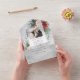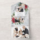 Ce design classique et traditionnel comprend deux modèles photo avec élément blanc central pour votre personnalisation sur un arrière - plan de poinsettias aquarelle, roses blanches et pin sur un arrière - plan gris brumeux. Les panneaux sont dotés d'un bonus supplémentaire de photo en déchirure ainsi que de champs de texte modifiables sur un arrière - plan d'aquarelle gris complémentaire.