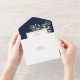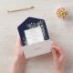 Le tout dans un faire-part de mariage avec d'élégants feuilles botaniques aquarelle sur un arrière - plan bleu marine et une bordure en or chic. L'invitation comprend une carte RSVP perforée qui peut être adressée individuellement ou laissée vide pour que vous puissiez écrire à la main les coordonnées de votre invité. Conçu par Thisisnotme©