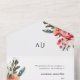 Bouquet chic boho avec roses rouges le tout dans une faire-part de mariage avec un monogramme classique.