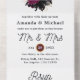 Carton d'invitation de mariage floral shabby chic couleur bourgogne vintage (marsala) et or à feuille métallique fausse avec des accents de noir personnalisables selon les spécificités de votre événement.