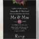 faire-part de mariage floral vintage bordeaux (marsala) et faux papier rose or à l'aquarelle d'or avec accents de noir personnalisable selon vos spécificités d'événement.