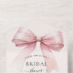 Arrière - plan beige crème, décorée d'un grand arc rose. Personnalisez et ajoutez le nom, les détails du parti, la date RSVP, l'adresse et le nom de retour.