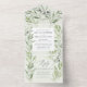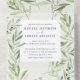 Notre magnifique conception botanique à l'aquarelle est le fond pour vos détails de mariage sur cette superbe carte d'annonce tout-en-un. Les tons feutrés du feuillage d'olive vert donnent une sensation classique intemporelle au design qui conviendrait à un mariage en toute saison. Avec une police élégante pour vos détails.