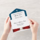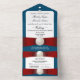 Invitation Tout En Un Burgundy & Blue Pearl Ribbon Mariage & RSVP Tout