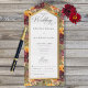DISPONIBLE AVEC OU SANS CODE QR OU OPTIONS DE SÉLECTION DE DÎNER. Ce design présente un magnifique vin bordeaux marsala et un motif fleuri rustique or jaune sur un arrière - plan vert vieilli. Le texte est affiché sur une zone de texte blanche insérée avec un cadre en faux or. Le dos continue le motif floral et inclut la première initiale de la mariée et du marié. Créé par Simply Farmhouse Press.
