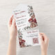 Invitation Tout En Un Burgundy Red Roses Floral QR Code Wedding