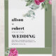 Cette invitation de mariage printanière présente une belle charpente blanche ornée de délicates fleurs roses et de branches d'eucalyptus. Les fleurs sont astucieusement placées dans le coin supérieur droit de l'invitation ainsi que sur la carte RSVP détachable déchirable, créant un look cohésif et élégant. Pour ajouter une touche de sophistication, des bordures vert sauge sont incorporées, ce qui renforce l'esthétique globale. La typographie minimaliste mais audacieuse du texte ajoute un élément moderne et élégant, rendant cette invitation parfaite pour une célébration mariage contemporaine et chic.