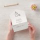 Introduire notre faire-part de mariage tout-en-un économique, conçu pour impressionner sans le coût élevé. Le pli supérieur est composé du monogramme du couple avec une esperluette en calligraphie délicate, ajoutant une touche personnelle. Le pli central présente le texte principal, écrit dans un style formel qui combine police serif avec script sophistiqué, exubérant élégance. Le pli inférieur comprend la section RSVP, offrant des options traditionnelles et numériques pour une réponse commode. Parfait pour les couples qui recherchent sophistication et praticité dans un ensemble magnifique et abordable.