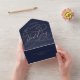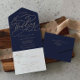 Cette calligraphie dorée romantique marine le mariage de tous dans une seule invitation est parfait pour un simple mariage. Le design classique moderne comprend des tourbillons fantaisistes et des fleurs fantaisistes avec une magnifique typographie de feuille d'or en faux champagne. Écrivez vos adresses d'invités à l'arrière de l'invitation pliée, ou achetez des autocollants de étiquette de adresse d'invités de coordination (vendus séparément).