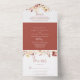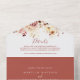 Cette calligraphie mariage florale gracieuse tout en une seule invitation est parfait pour un mariage rustique. Le design présente une aquarelle dainty blanche, bordeaux, roses roses roses et feuilles d'automne. Enregistrez du papier en incluant plus de détails dans l'invitation plutôt que sur une carte de boîtier séparée.