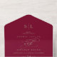 Ce mariage monogramme romantique de calligraphie bordeaux, tout en une seule invitation, est parfait pour un mariage simple. Le design classique moderne comprend des tourbillons fantaisistes et des fleurs fantaisistes avec une magnifique typographie de feuille d'or en faux champagne. Écrivez vos adresses d'invités à l'arrière de l'invitation pliée, ou achetez des autocollants de étiquette de adresse d'invités de coordination (vendus séparément).