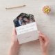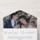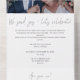Vous êtes mariés lors d'une petite cérémonie ? Ne ratez pas la fête après le mariage avec vos amis et votre famille ! Cette invitation post-mariage présente votre photo de mariage préférée en haut, un message personnel, la date et le lieu de votre fête de mariage et une carte-réponse pré-adressée incluant le choix de repas pour vos invités. Une invitation post-mariage moderne avec un script typographique simple, un texte noir moderne sur fond blanc