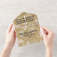 Faites de ce 1er anniversaire de mariage un événement inoubliable avec ces invitations commémoratives tout-en-un ! Une élégante écriture noire et blanche avec des confettis hexagonaux sur fond de papier vintage et noir ajoute une touche mémorable à cette occasion spéciale et à ce jalon. Personnalisez avec les noms des heureux mariés, la date, le lieu et l'heure de la célébration, ainsi que les adresses de l'expéditeur et du destinataire.