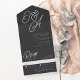 Un magnifique faire-part de mariage monographique à base de typographie avec vos initiales en lettres de script surdimensionnées en haut, en tons tonaux pour un effet filigrane. Personnalisez avec vos détails de mariage dans les lettres serif classiques alignées en bas à droite. Notre colorway de cendres fait une déclaration classique avec des lettres blanches et croustillantes sur un arrière - plan noir doux. La carte RSVP attachée et le style pliant font de cette invitation tout-en-un un choix attrayant.