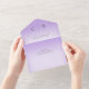 DISPONIBLE AVEC OU SANS CODE QR À ANALYSER. Ce design simple mais élégant a un look moderne, avec deux anneaux de mariage en or entrelacés sur une douce couche de flou blanc sur un arrière - plan en lavande douce. Les invitations tout-en-un personnalisées sont une combinaison unique d'une invitation personnalisée magnifiquement imprimée et d'une carte postale RSVP perforée facile à déchirer. Et ils sont si faciles à utiliser ! Il suffit de plier, puis de sceller le rabat arrière avec les trois autocollants clairs inclus, et le courrier. Et quand vos invités reçoivent votre invitation personnalisé, ils déchirent la carte RSVP perforée et vous la remettent dans le courrier !