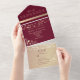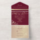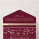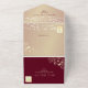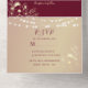 Cette faire-part de mariage tout en un romantique présente des tons bordeaux profonds, des accents floraux dorés doux et des lumières à cordes brillantes, parfaits pour un mariage d'hiver ou d'une soirée élégante. Avec un RSVP intégré et un panneau d’envoi, c’est une solution élégante et pratique pour les couples qui cherchent à simplifier leur gamme de papeterie sans sacrifier la beauté.