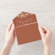 Ce fil tout-en-un illumine la faire-part de mariage en terre cuite avec une typographie élégante. L'invitation comprend une carte RSVP perforée avec votre code QR du site Web mariage. Conçu par Thisisnotme©