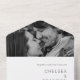Moderne tout en un avec une disposition simple et minimaliste avec les détails de votre mariage en alignement droit avec votre photo préférée en haut. Tous les éléments de conception sont en gris et peuvent être modifiés dans l'outil d'édition de conception. Ce chic "sceau et envoyer" tout en un seul faire-part de mariage avec un design minimal mais élégant va bien avec n'importe quel style de mariage contemporain.