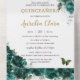 Invitation Tout En Un Chic émeraude Vert Floral Quinceanera Papillons
