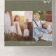 Cette carte de vacances Joyeux Noël vert moderne et chic multi photo est l'année stylisée parfaite dans l'accueil de vacances revue. Ce design boho simple présente une calligraphie sophistiquée classique dans le vert olive et blanc rustique. Customisez votre sceau et envoyez une carte de vacances triplée avec 6 photos, un bulletin familial, vos noms et l'année.