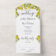 Tout en un faire-part de mariage citrons, fleurs, verdure et des initiales de monogramme de script. L'invitation comprend une carte RSVP perforée qui peut être adressée individuellement ou laissée en blanc pour que vous puissiez écrire à la main les coordonnées de votre invité. Conçu par Thisisnotme©