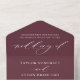 Le rouge bordeaux classique et élégant tout en un faire-part de mariage est une option invitation triplé unique qui est auto-fermé, scellé, envoyé aux invités avec une carte postale RSVP détachable; pas besoin d'enveloppes! Le design comprend des accents de script de calligraphie moderne avec typographie de style classique. L'adresse de l'invité peut être incluse à l'arrière - imprimée ou manuscrite, ainsi que l'envoi postal. Le rabat arrière comprend un accent floral simple avec un texte d'adresse de retour personnalisé, et la carte postale RSVP inclut l'adresse de retour sur le dos afin qu'il puisse être arraché à l'aide d'un pli perforé et renvoyé par la poste sans enveloppe. Les couleurs rouge et blanc du vin de Bourgogne peuvent être modifiées pour correspondre à votre code couleur mariage.