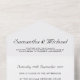 Streamline your wedding planning with this elegant all-in-one invitation that combines your wedding invitation, RSVP, and details card in one cohesive design. The clean, minimalist style offers timeless sophistication perfect for modern couples who appreciate simplicity and efficiency. This comprehensive invitation suite eliminates the need for multiple pieces while maintaining an elegant, professional appearance. Ideal for contemporary weddings, minimalist celebrations, or busy couples who want beautiful stationery without the complexity. The simple design ensures your important wedding details are clearly presented while creating a memorable first impression for your guests.