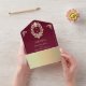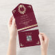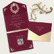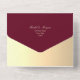 Cette invitation de mariage tout-en-un de style baroque, couleur Bourgogne et or, est le mélange parfait d'une élégance riche et d'une praticité moderne. Le fond rouge profond luxueux avec un cadre de monogramme doré orné crée un look royal et intemporel, tandis que le design pliable fait office de propre enveloppe pour un envoi facile. À l'intérieur, la section de réponse comprend un code QR scannable qui renvoie directement vers votre site web de mariage pour des réponses en ligne instantanées. Un choix sophistiqué et pratique pour les couples qui organisent une célébration de mariage formelle, classique ou luxueuse.