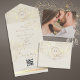 Nous vous présentons notre invitation de mariage tout-en-un exquise, une fusion d'élégance et de charme vintage. Délicatement confectionnée dans une couleur crème ivoire et ornée d'accents de feuille d'or scintillants, cette invitation dégage de la sophistication. Elle présente un monogramme sur mesure mettant en valeur les initiales de la mariée et du marié, entrelacées dans une union éternelle. Enrichie de dentelle florale dorée bohème et d'une photo personnalisée capturant l'essence de votre histoire d'amour. Complète avec notre site web et un code QR pour un RSVP sans couture et des détails supplémentaires. Que cette invitation soit le prélude à votre célébration intemporelle, où l'amour et la beauté s'entrelacent.