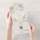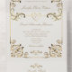 Apportez une élégance intemporelle à votre mariage avec notre invitation tout-en-un inspirée de l'ancien. Ce design baroque luxueux en crème ivoire présente des détails floraux baroques dorés ornés et un motif de cœur de corde romantique. Complet avec un code QR pour un RSVP facile et un accès au site web du mariage, il est magnifiquement conçu pour être scellé et envoyé à vos invités !