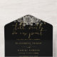 Invitation Tout En Un Code QR de mariage noir gothique et roses dorées