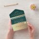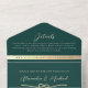 Invitation Tout En Un Code QR de mariage Vert Émeraude et Or