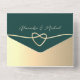 Faites une déclaration avec cette invitation de mariage sophistiquée vert émeraude et or faux, dotée d'un design de cœur en corde romantique, d'une écriture calligraphique élégante et d'une photo du couple. Comprend des options de RSVP et de choix de repas intégrées avec un QR code pratique — le tout dans une mise en page élégante et pliable.