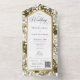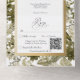 DISPONIBLE AVEC OU SANS CODE QR OU OPTIONS DE SÉLECTION DE DÎNER. Ce design présente un arrière - plan de différents types de verdure botanique. La zone de texte blanche est encadrée de faux papier doré. Un monogramme avec la première initiale de la mariée et du marié sur le rabat extérieur le complète. Créé par Simply Farmhouse Press.
