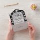 Faites de votre faire-part de mariage un véritable reflet de votre histoire d'amour avec ce design tout en un exquis. Laissez la beauté intemporelle des roses noirs et gris ouvrir la voie à une célébration aussi unique et inoubliable que votre amour. Les invitations de mariage tout-en-un sont à la fois belles et pratiques en combinant le faire-part de mariage avec une carte postale RSVP perforée facile à enlever. Ils sont aussi rapides et faciles à préparer pour l'envoi. Adressez-vous simplement à l'invitation, pliez le rabat arrière et scellez avec les autocollants clairs inclus. Une fois que vos invités reçoivent l'invitation préadressée, ils arrachent simplement la carte perforée RSVP et la déposez dans le courrier. L'ajout du code QR permet à vos invités d'accéder facilement à votre site mariage pour obtenir des informations, notamment les détails de la réception et les choix de dîner !