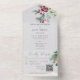 Invitation Tout En Un Code QR gris neige et baies de pin d'hiver moderne